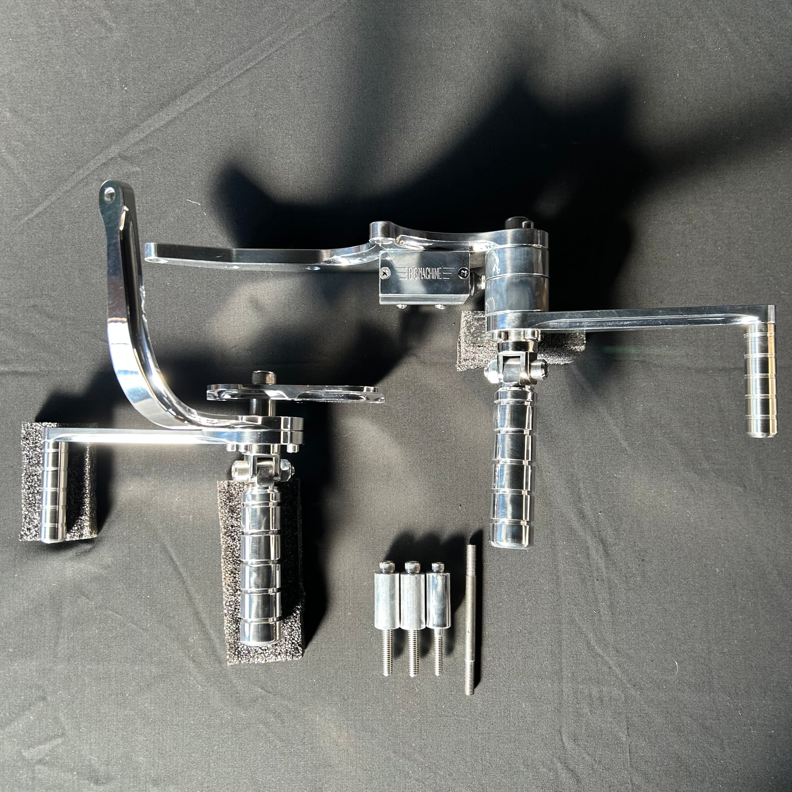 ソフテイル・ファミリー等のフォワードコントロールをミッドコントロールに変更するためのパーツです。EVO~TC06(5速)まで取り付け可能です。